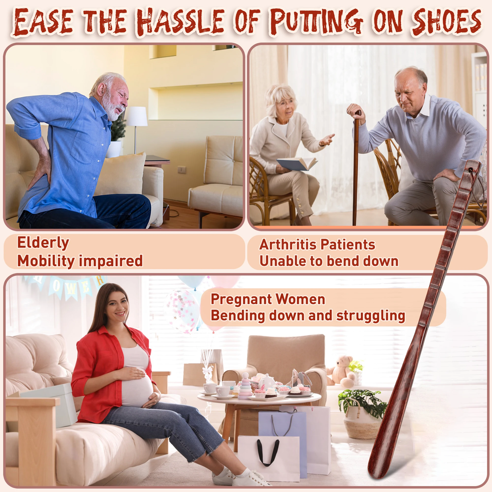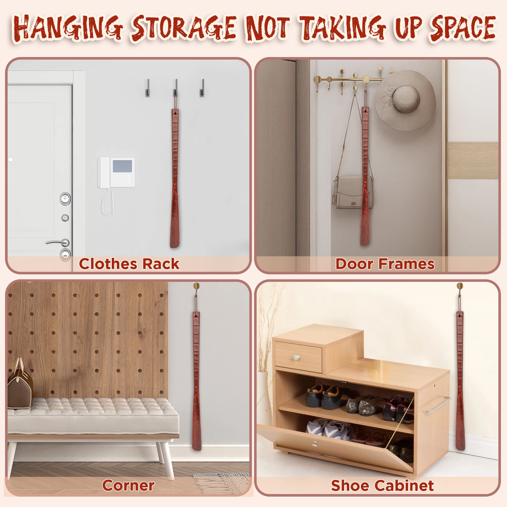 Wooden Shoehorn Long Handle Beech Shoe Horn with Leather Strap Flexible Lifter