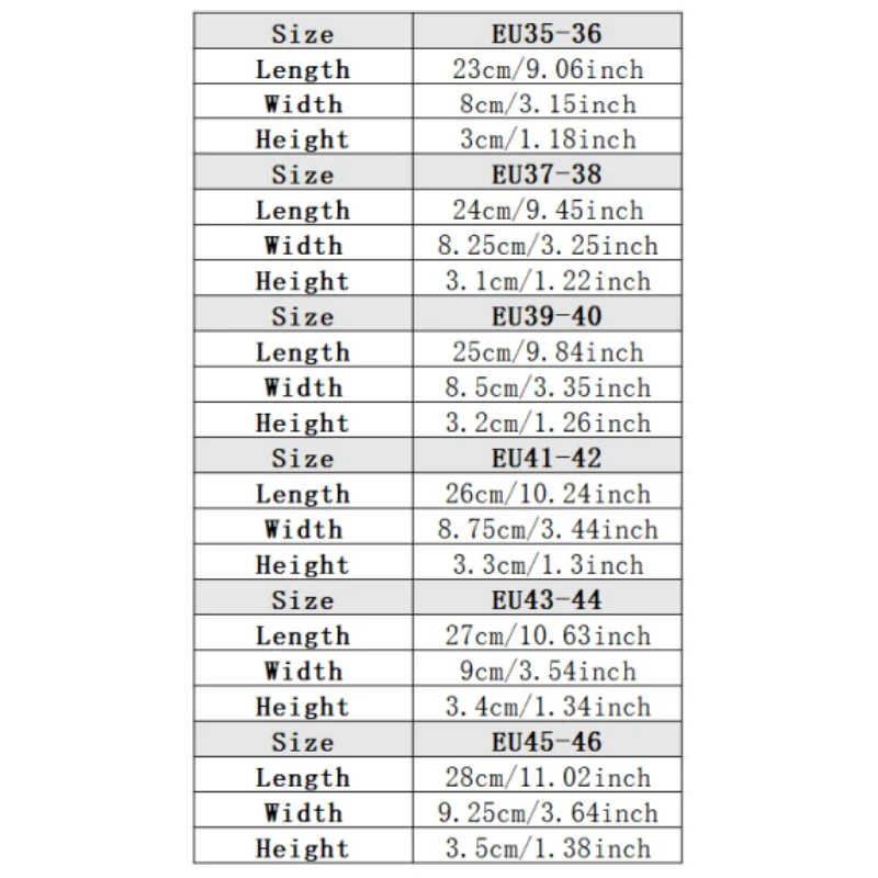 - Size: EU35-46 (approximately 230-280mm)