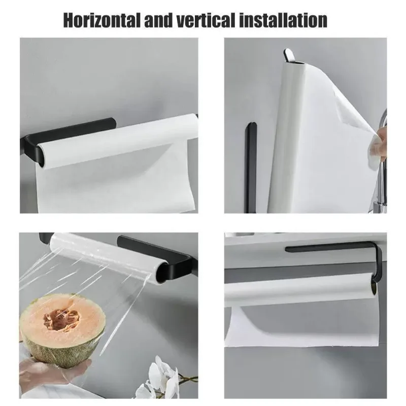 This self-adhesive paper towel holder is designed for easy installation without the need for drilling. It is perfect for organizing your kitchen or bathroom, providing a convenient way to store and access paper towels or toilet rolls.