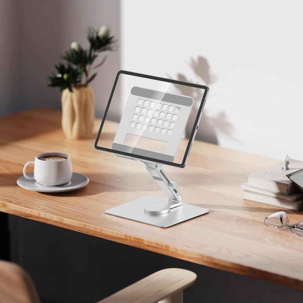 Portable Aluminum Tablet Stand Holder Desktop Folding Adjustable Rotating Metal