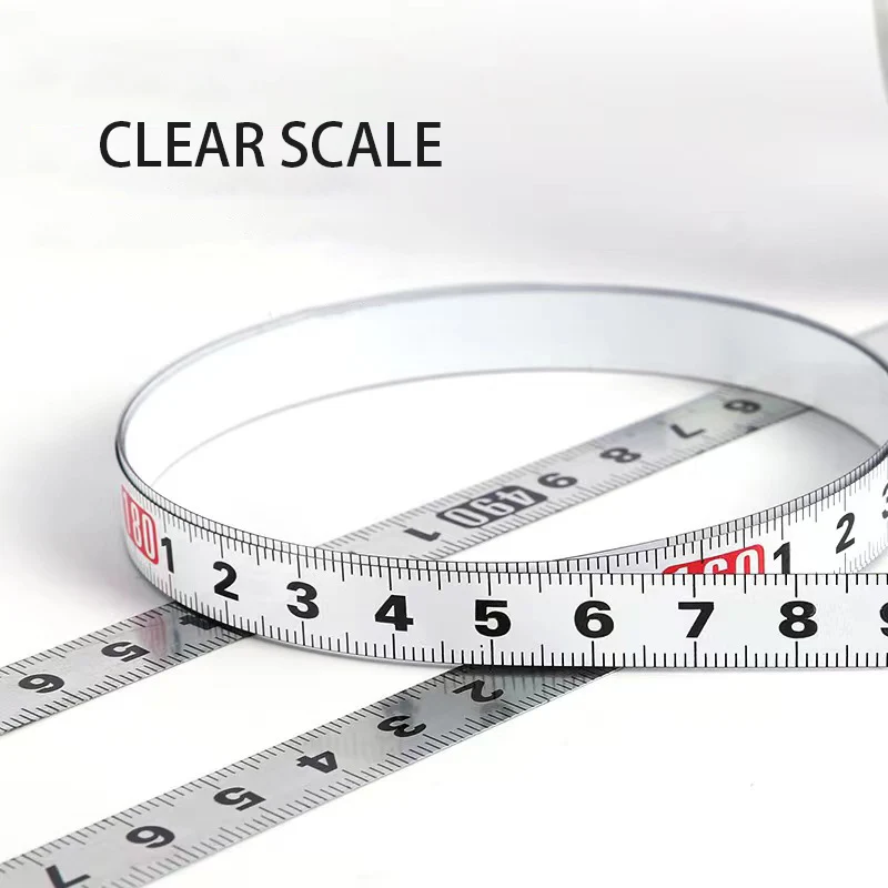 This self-adhesive measuring tape is designed for convenience and precision in various applications. Made from durable stainless steel, it features a strong adhesive backing that allows it to be easily attached to different surfaces such as metal, wood, plastic, and glass. The tape can be cut to the desired length, making it versatile for any project.