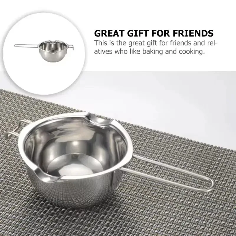 This stainless steel candle wax melting boiler pot is designed for melting wax, chocolate, and candy. Its durable construction and heat-resistant handle make it a reliable tool for both crafting and cooking.