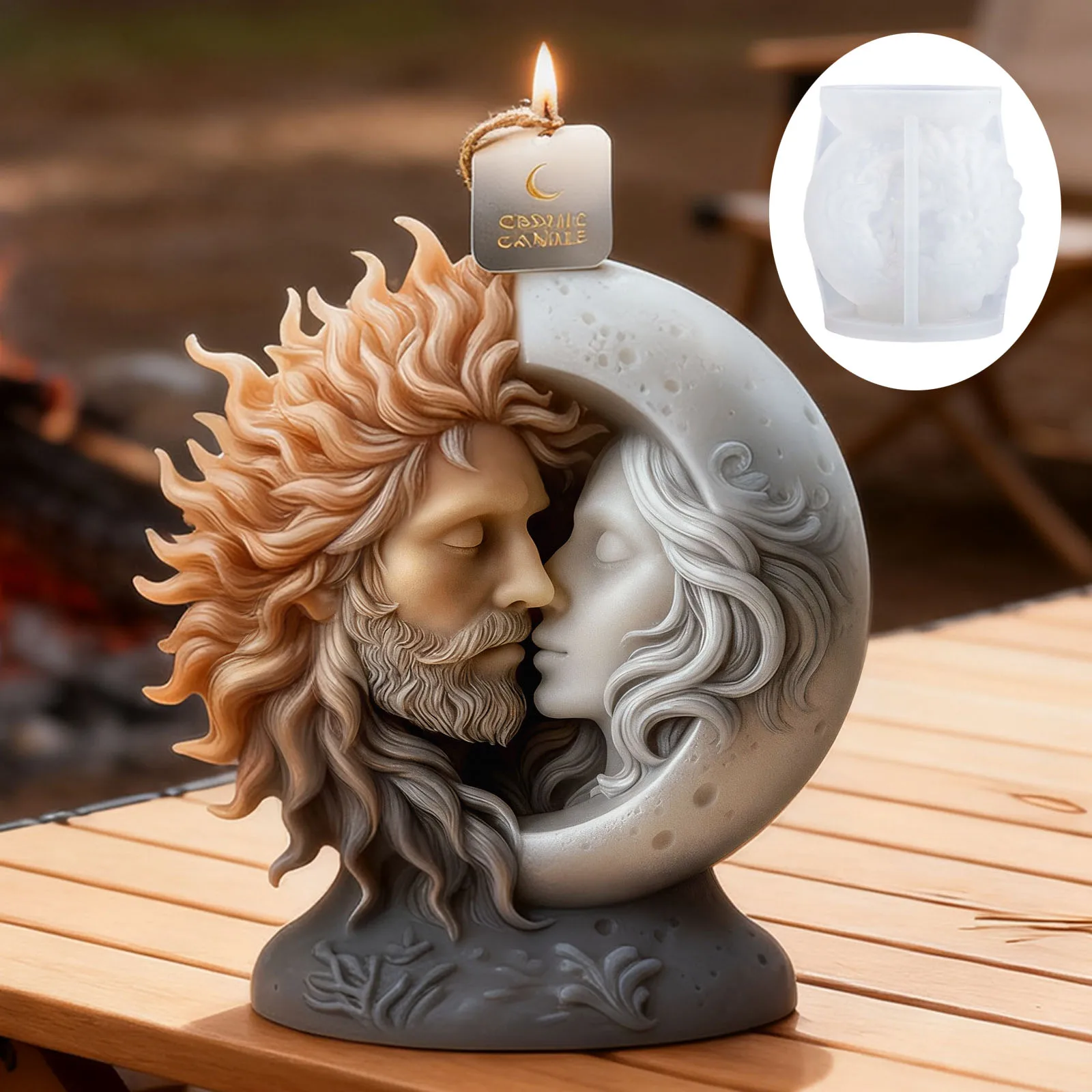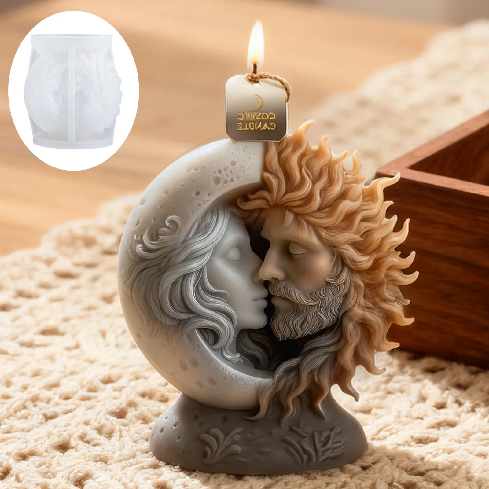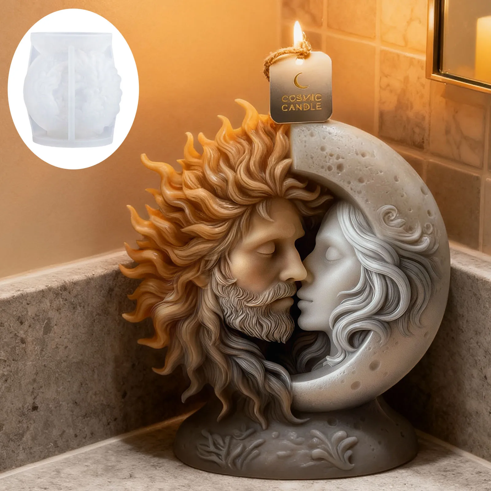 The sun and moon embracing candle mold is a beautifully designed product that allows you to create unique candles for various occasions.