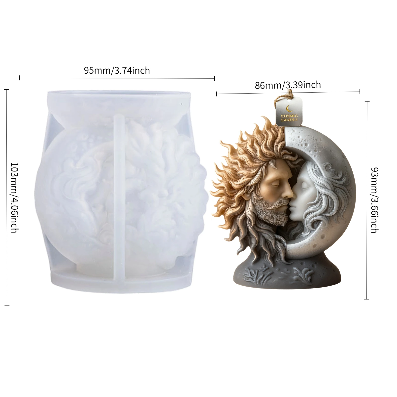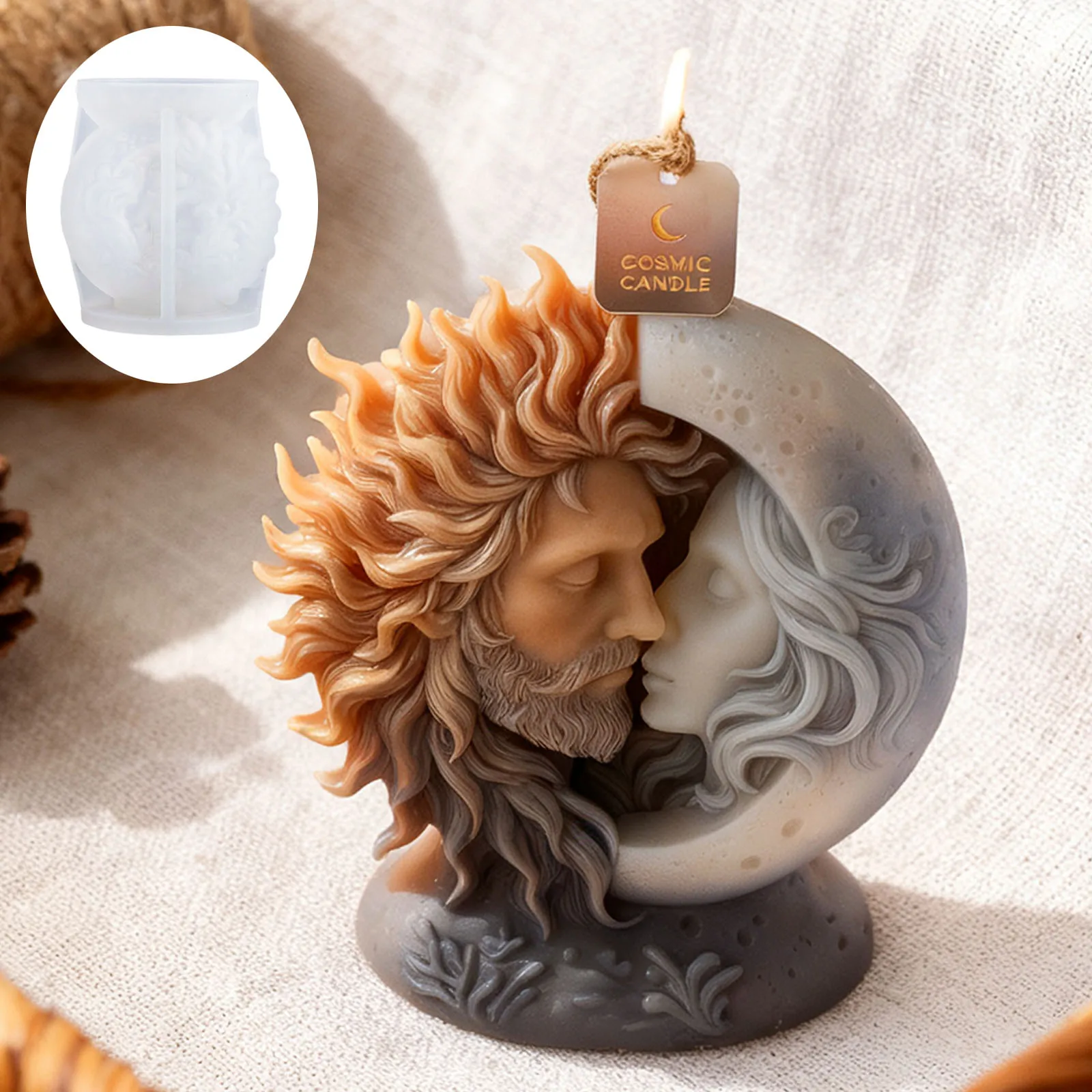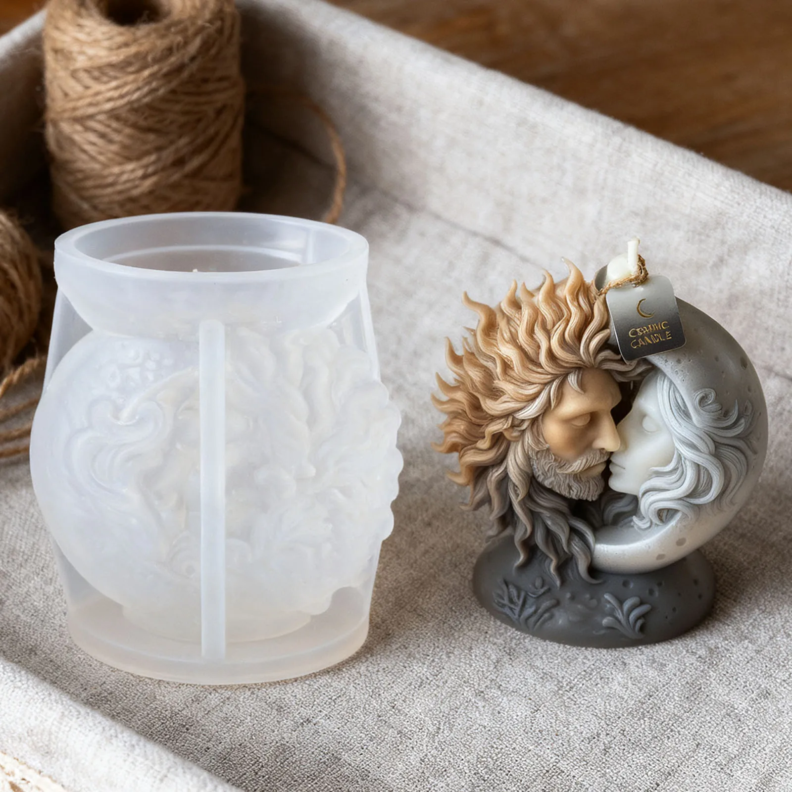 The sun and moon embracing candle mold is a beautifully designed product that allows you to create unique candles for various occasions.