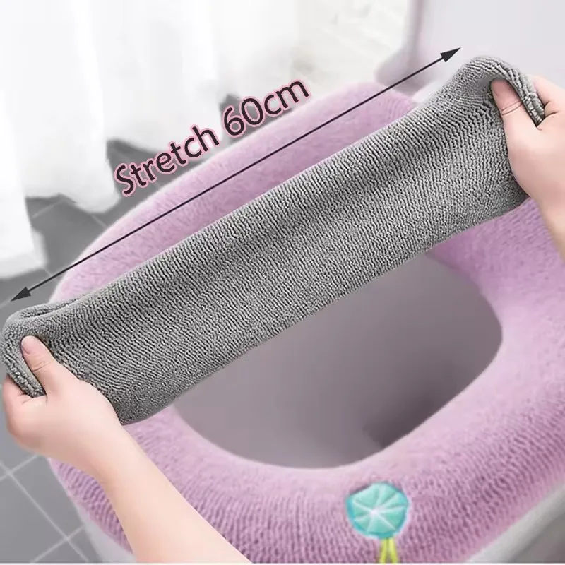 This toilet seat cover provides warmth and comfort during cold days, ensuring a hygienic and pleasant experience. It is designed for easy maintenance, being suitable for both hand and machine washing. The cover is flexible and can fit various types of O-shaped toilets.